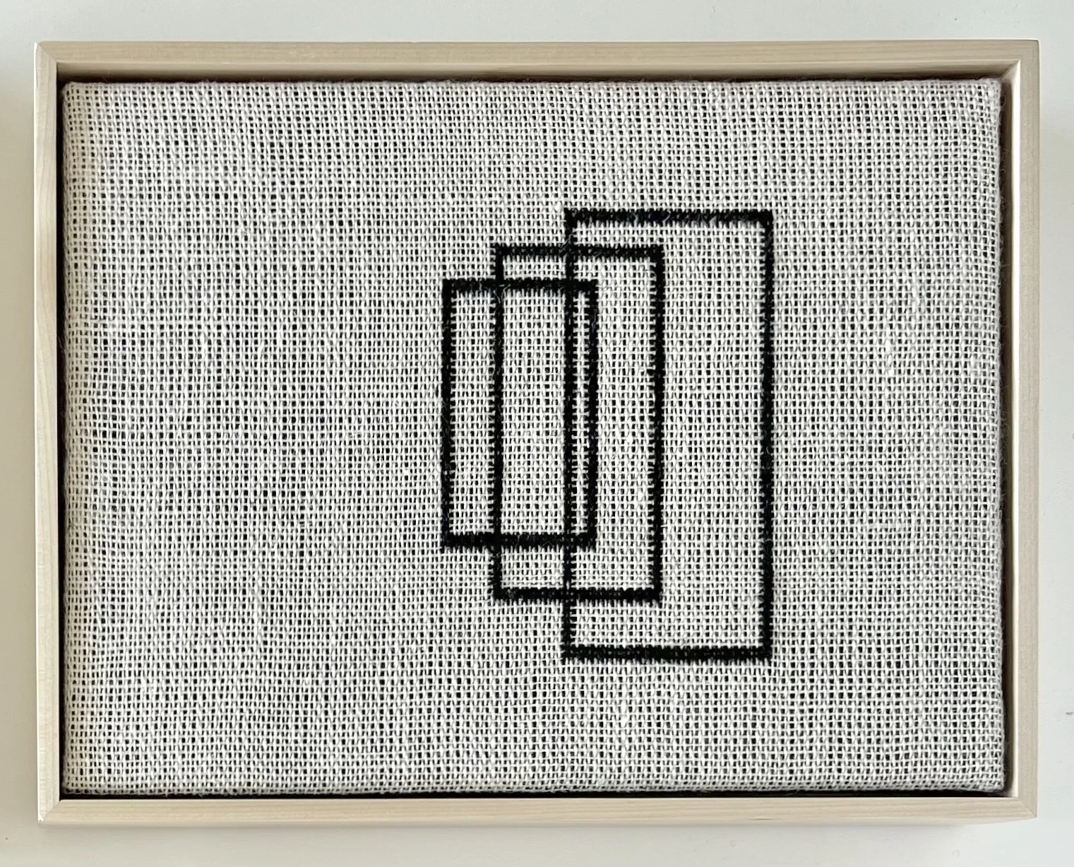 Through weaving, I experiment with geometric dimensionality and reductive linear forms to invoke liminal spaces, the thresholds between two worlds. I utilize contrasting constraints such as hard edges within soft fibers, stark black against natural tones, and complex weave structure paired with minimal lines to form perceived vacuous, hollow spaces to move through. I am interested in these woven thresholds representing the waiting areas between one point in time and the next, and that which holds space for points of transition and transformation within ourselves and our world.